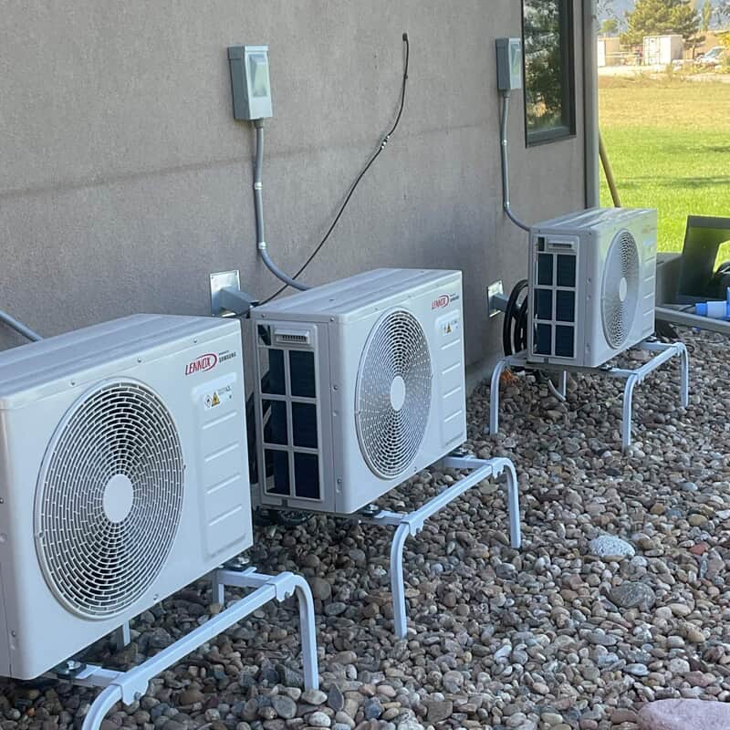 If your home doesn’t have air ducts to distribute heat, no worries. You could use a special kind of heat pump called a mini-split heat pump. It connects an outdoor air-source unit to multiple indoor units. These ductless mini-split systems are useful for retrofitting a home with a heat pump system because their locations outside and inside the home are flexible.